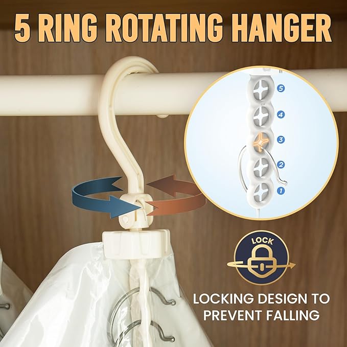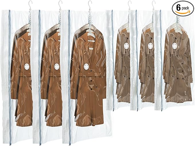 TAILI Hanging Vacuum Sealer Storage Space Saver Bags for Clothing, Suits and Jackets, Closet Organizers, Wider Sides (3 Long, 3 Short) Cream