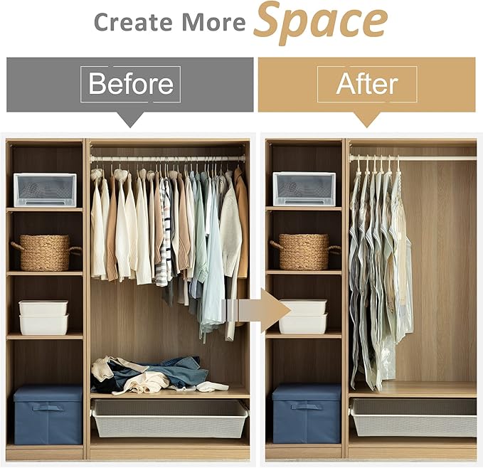 - Increase Your Storage Space: No Folding Clothes Anymore, Just Store Clothes By Hanging to Avoid Causing Wrinkles! Creating more extra space effectively. Widen Square Shape design provides Larger Storing Capacity and Make Sealing Easier