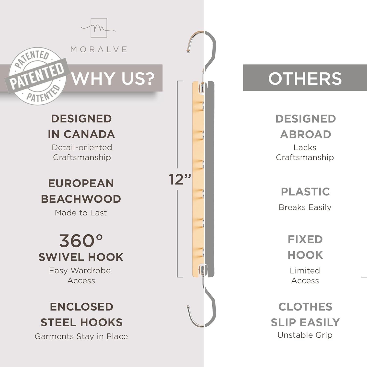 MORALVE Space Saving Hangers for Closet – 4 Pack European Beechwood 6-Tier Shirt Organizer with 360° Swivel Hook – Collapsible Clothes Hanger for Closet Organization (Hangers Not Included)