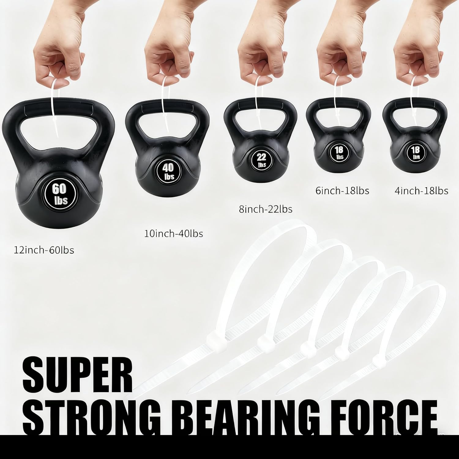- Cable Ties Packing Including:4" , 200pcs | 6", 200pcs | 8", 100pcs |10", 50pcs| 12", 50pcs . Total: 600pcs Cable Zip Ties.