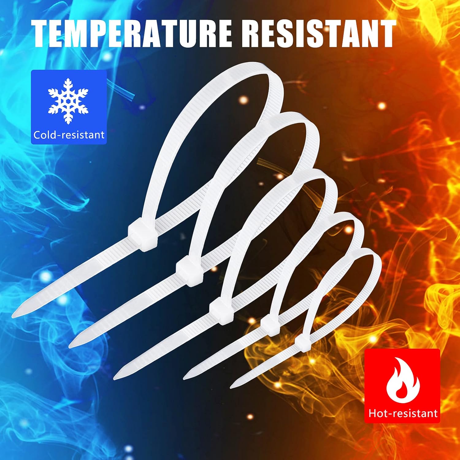 Cable Zip Ties,600 Piece Self-Locking Nylon CableTies,Assorted Sizes 4+6+8+10+12-Inch,Multi-Purpose Wire Management Plastic Ties,Perfect for Home,Garden,Office,Travel and Workshop.White