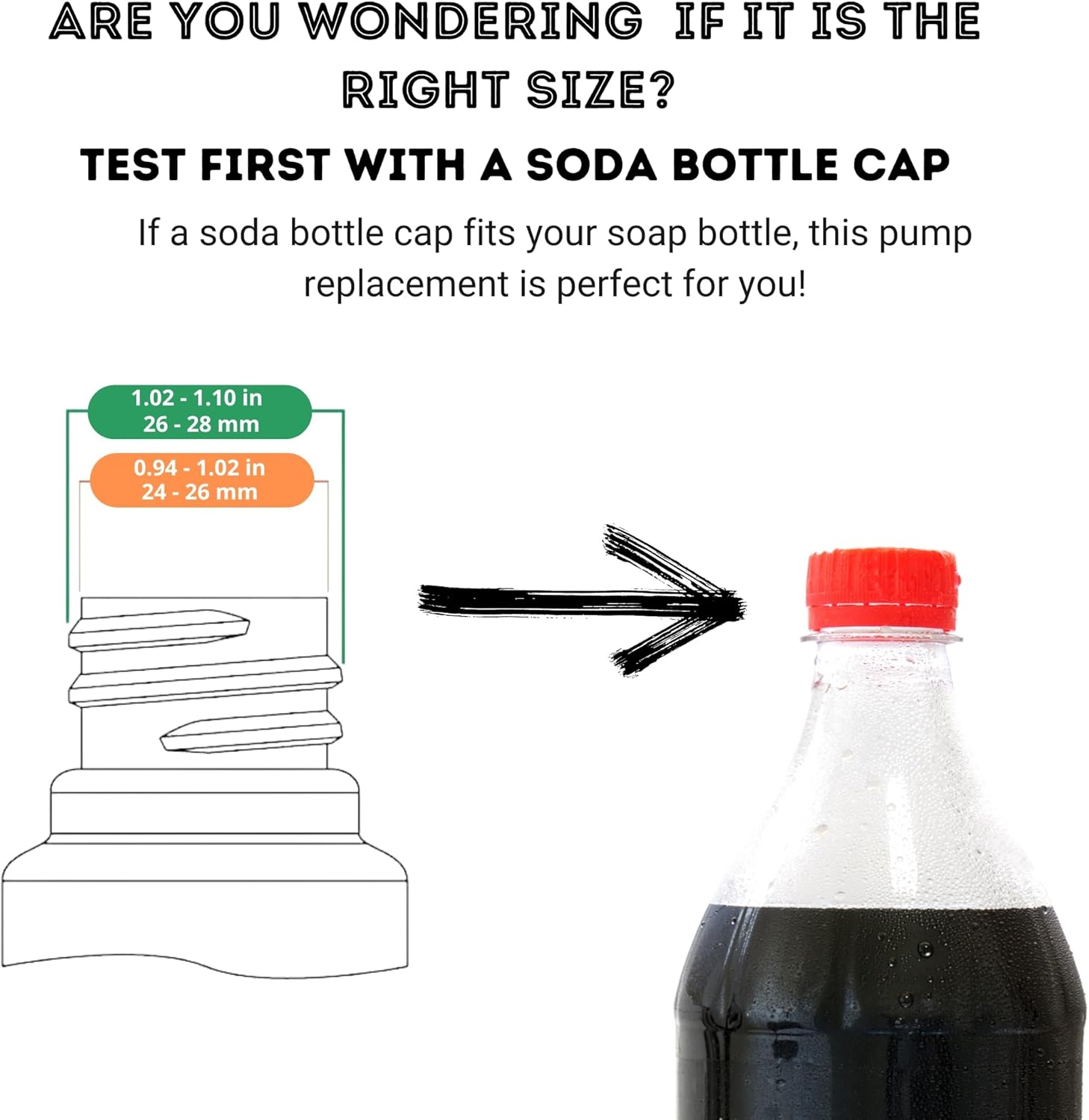 - Suitable for bottle thread size of 1.02 IN-1.10 IN (26 - 28 mm) - Standard 28/400. The tube length is 8.66 IN/22 cm - easy to cut if it is too long for your dispenser
