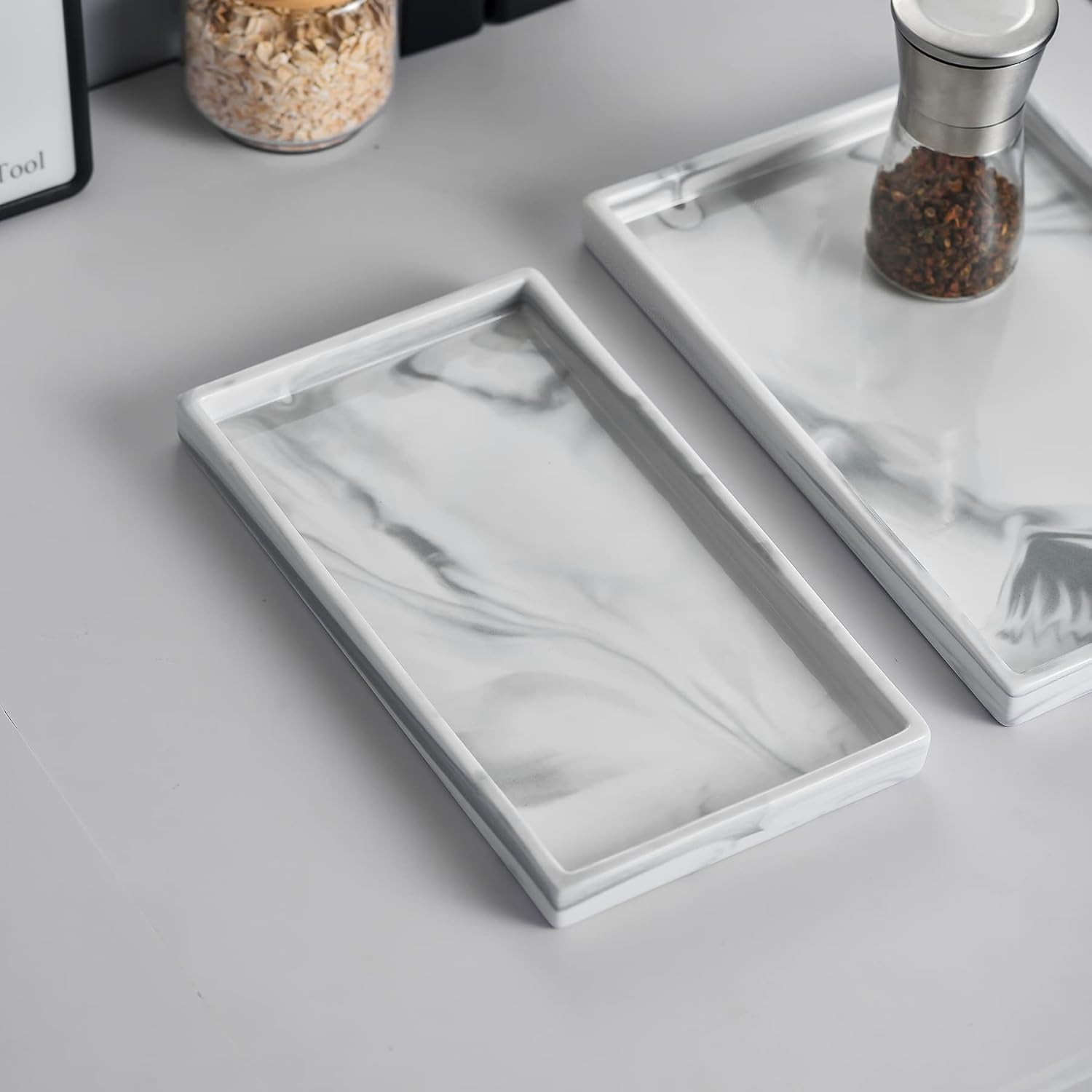 Ceramic Vanity Bathroom Tray Marble Decor Holder and Organizer for Jewelry Perfume Candle Soap Plant Towel Cosmetic Act Large Tray