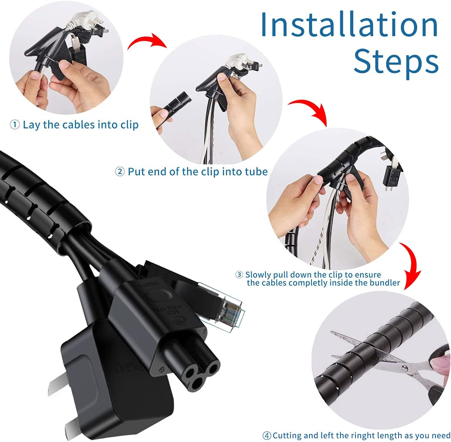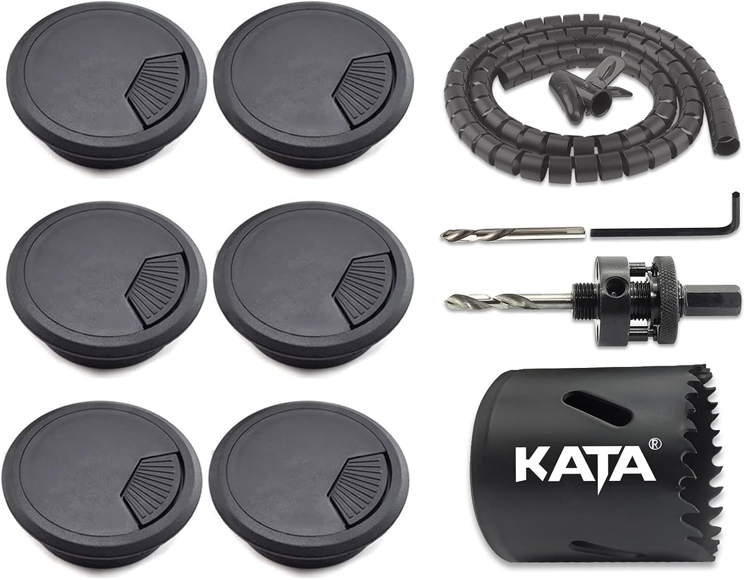 KATA 6-Pack Desk Grommet 2 Inch (50mm) Wire Cord Cable Desk Hole Cover with Bi-Metal Hole Saw Kit and Cord Wire Wrap Coiled Tube Sleeve Management, 2M Cable Sleeve Organizer