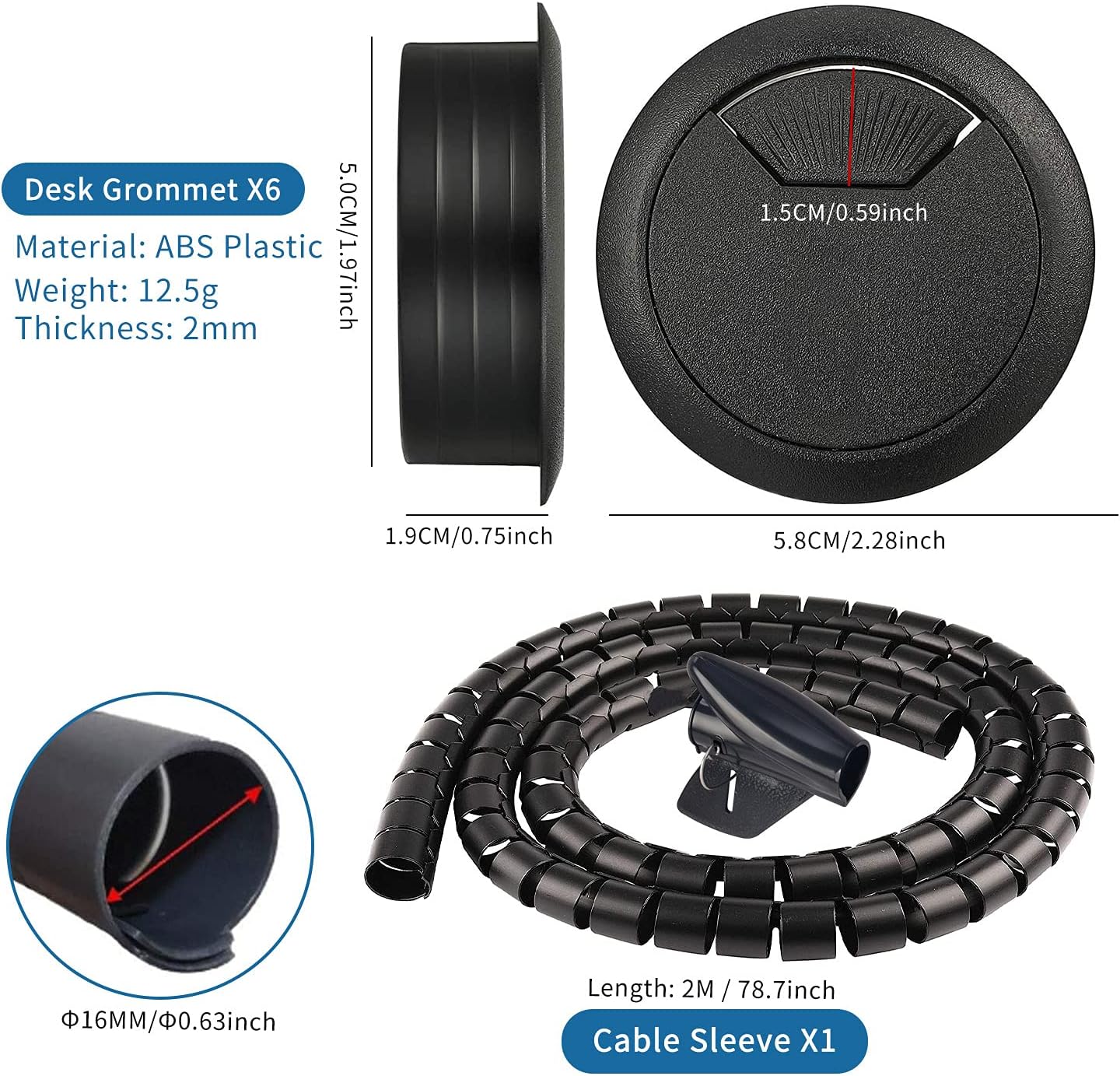 - Keep Clean and Tidy: The desk grommets and cable sleeve can effectively manage cables and wires, keep the desktop clean and tidy