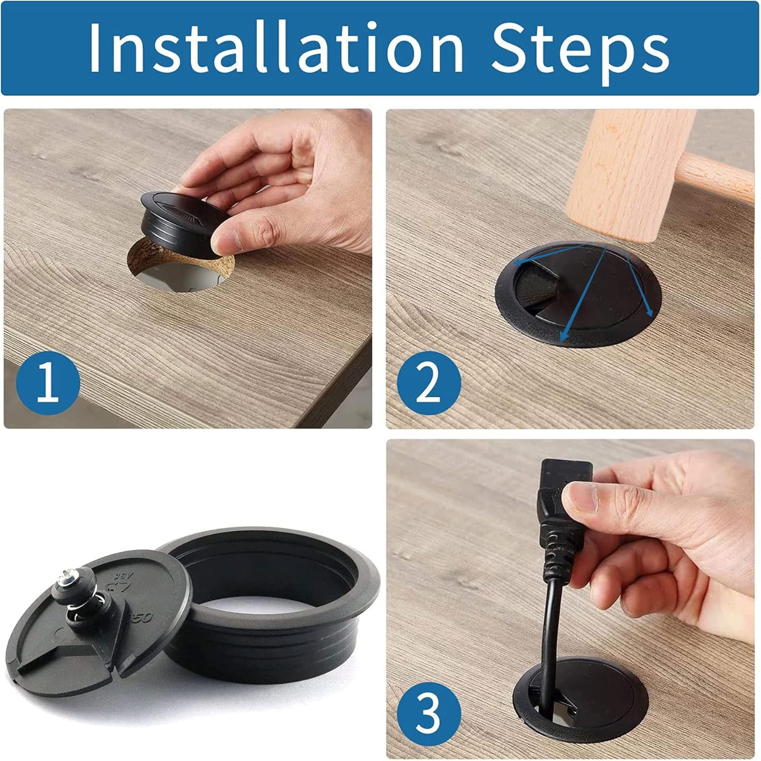- Simple But Useful: Installation is simple and convenient: Drill a hole on the desktop with the hole saw blade and the mandrel arbor,then put the desk grommet directly into the drilled hole. Last, use the cable sleeve to manage your wires on/under your desk
