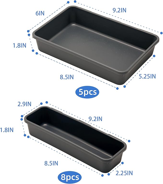 BYCY Office Drawer Organizers Bins Junk Drawer Organizers Tray Storage Dividers for Office Desk Dress Makeup (13pcs 2Size)