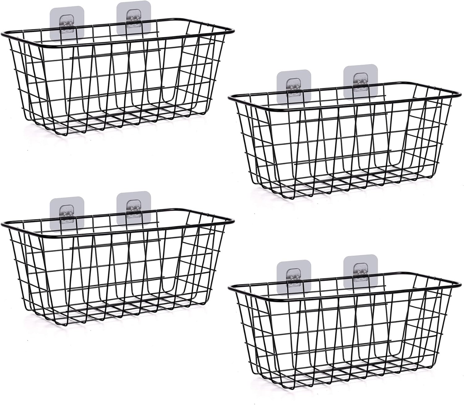 4 Pack Wire Storage Baskets Household Metal Wall-Mounted Containers Organizer Bins for Kitchen Bathroom Freezer Pantry Closet Laundry Room Cabinets Garage Shelf, Medium