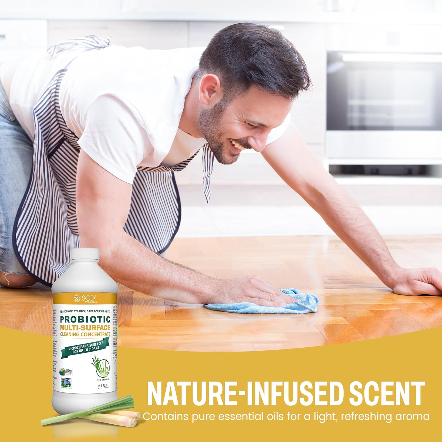 - Lemongrass Multi-Purpose Cleaner – SCD Probiotics patented technology harnesses the power of nature to fight grease & grime throughout your home. A simple yet powerful blend of active probiotics + enzymes that safely scrub your home clean.