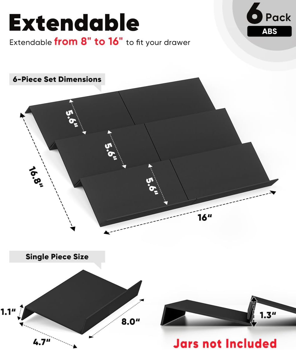 Artibear Expandable Spice Rack Drawer Organizer for Kitchen Cabinets, Set of 6, ABS
