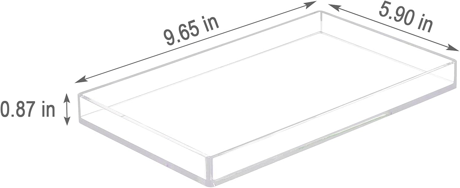 - PORTABLE: Measures: 9.65 x 5.90 x 0.87 inches, the vanity tray is great to fit your most used vanity items. And the acrylic material makes it easy to clean, just wipe with a clean damp cloth or wash with water