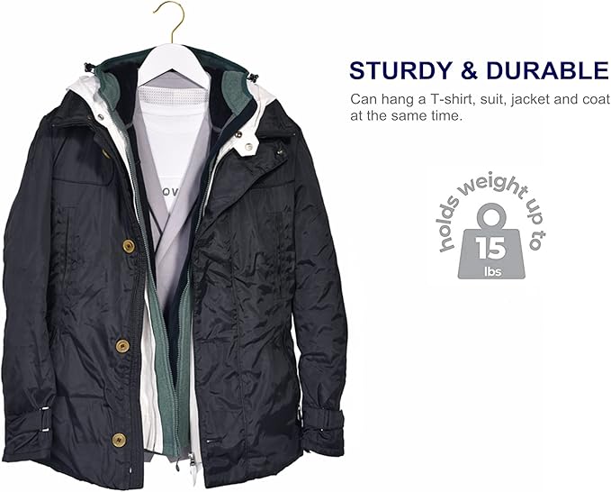 - 【PRACTICAL FEATURES】These luxurious clothes hangers are made of smooth white wood with all practical features as a anti-rust 360° gold hook, a grooved, vinyl covered pant bar, and a contoured shoulder line with perfectly cut notches.