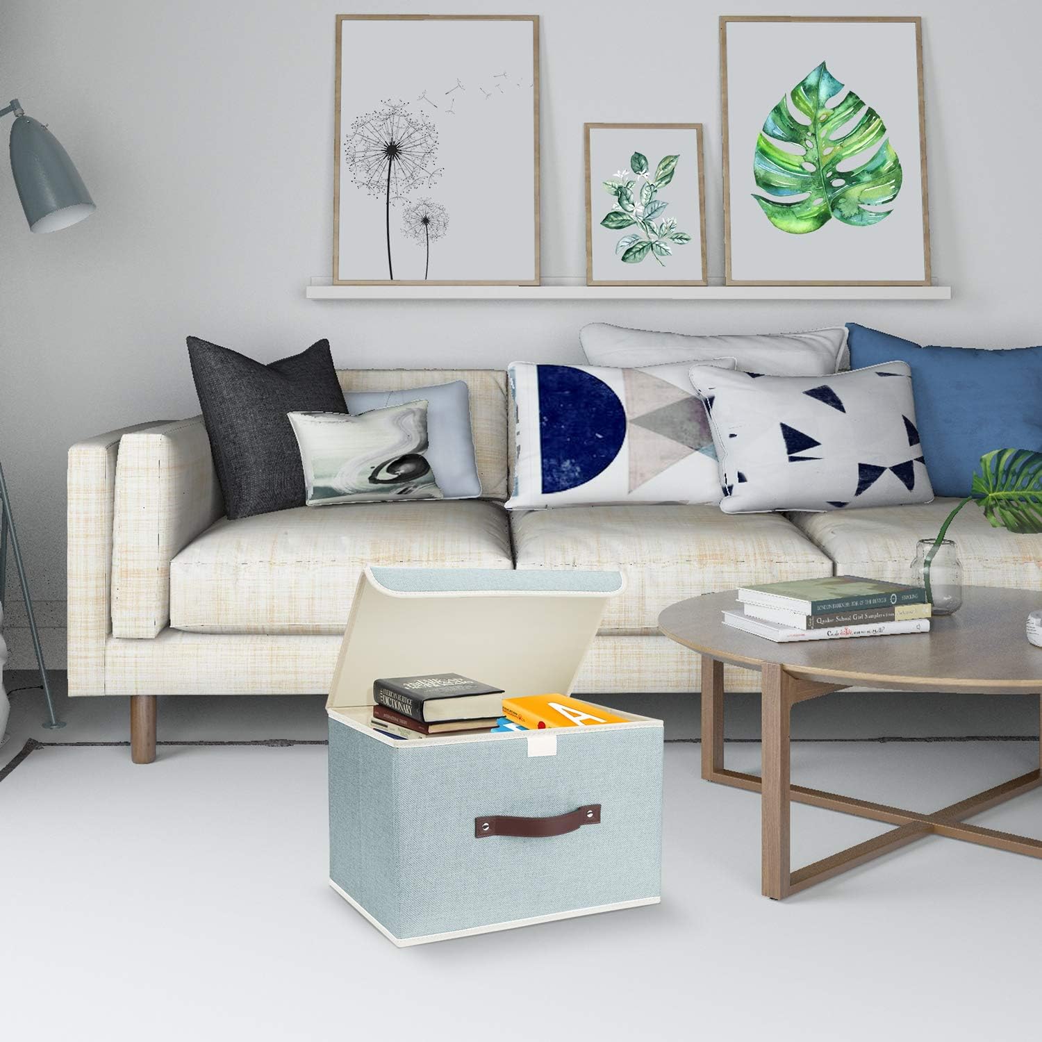 TYEERS Collapsible Storage Boxes, Washable Fabric Storage Bins with Lids, 14.9x9.8x9.8 inches, 3 Pack, Aqua Spring