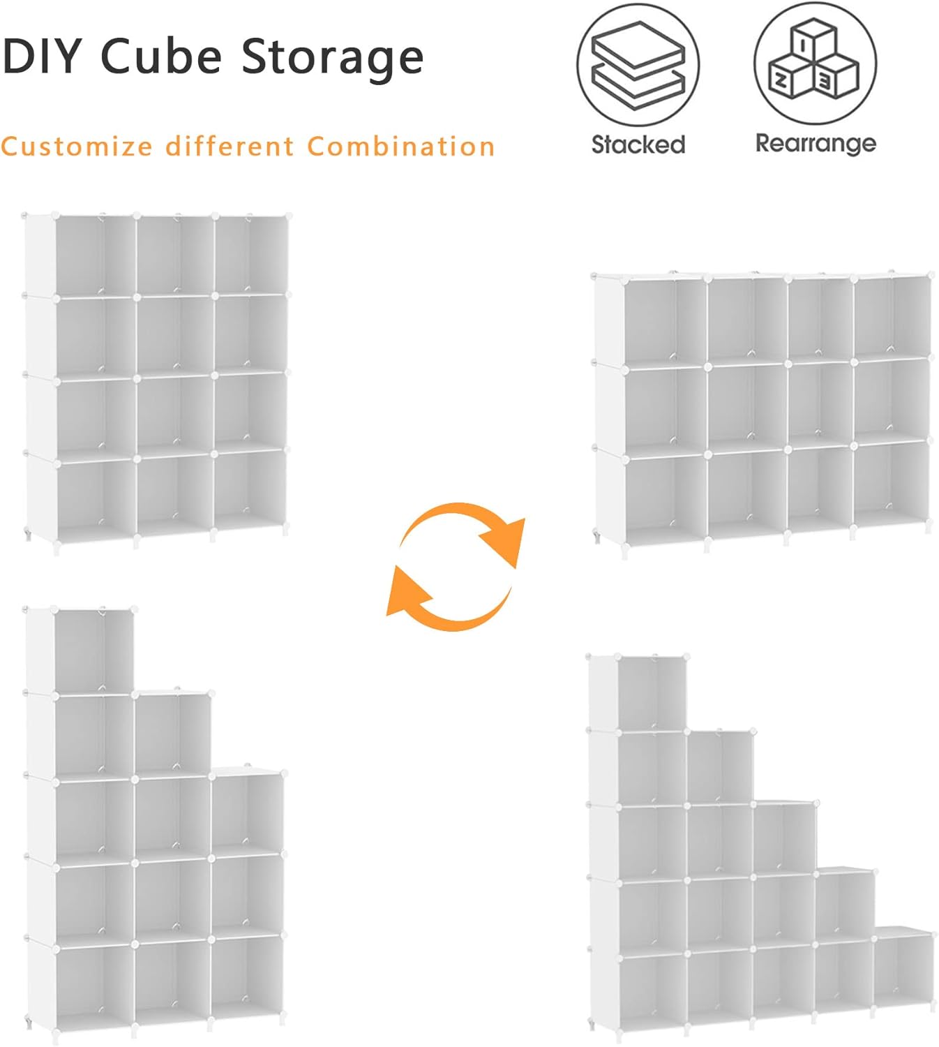 AWTATOS Cube Storage Organizer Storage 12 Cube Bookshelf DIY Plastic Closet Clothes Storage Shelves with Wooden Mallet, Stackable Storage Solution for Home, Bedroom, White