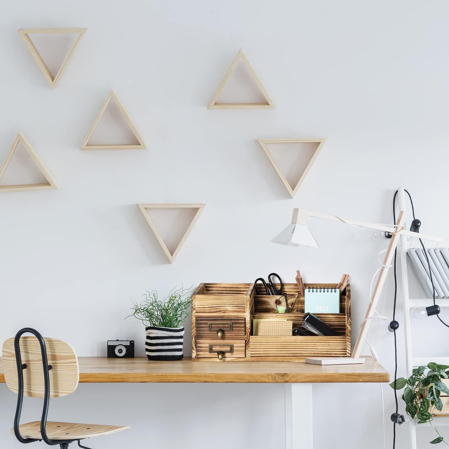 - Unique structural design: 6 stepped compartments with different spaces on the right, 2 slide-out drawers on the left and 1 large groove at the top, providing enough storage space for various office supplies, cosmetics, daily necessities and Accessories.