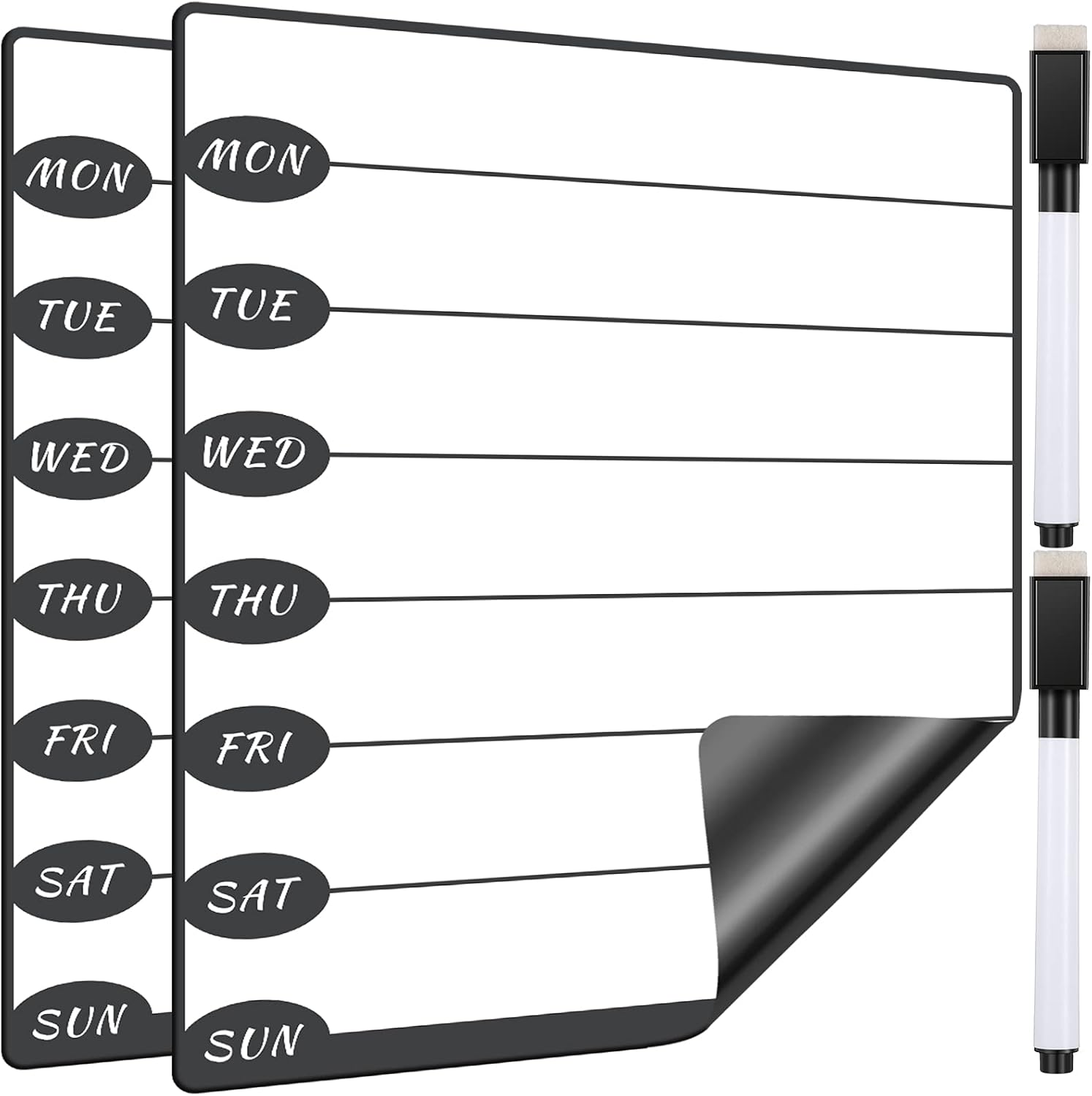 - What you will get: comes with 2 pieces magnetic weekly calendars and 2 pieces magnetic dry-erase markers, sufficient quantity allows you to use and replace, nice tool to record your daily life
