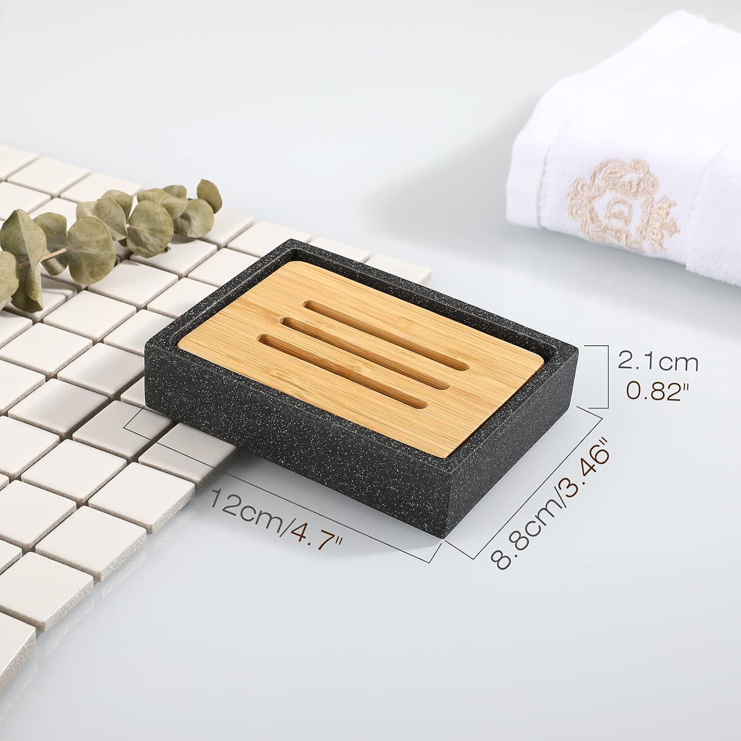 Luxspire Bamboo Soap Dish, Resin Soap Holder with Drainage, Wooden Soap Dish for Shower, Bathroom, Sink, Kitchen and Countertop, Gravel Black