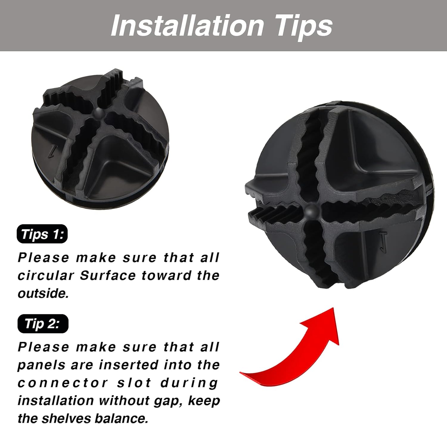 - Convenient to use: inset all panels into the connector and make sure all the circular surface toward outside, keep the shelves balance after installation