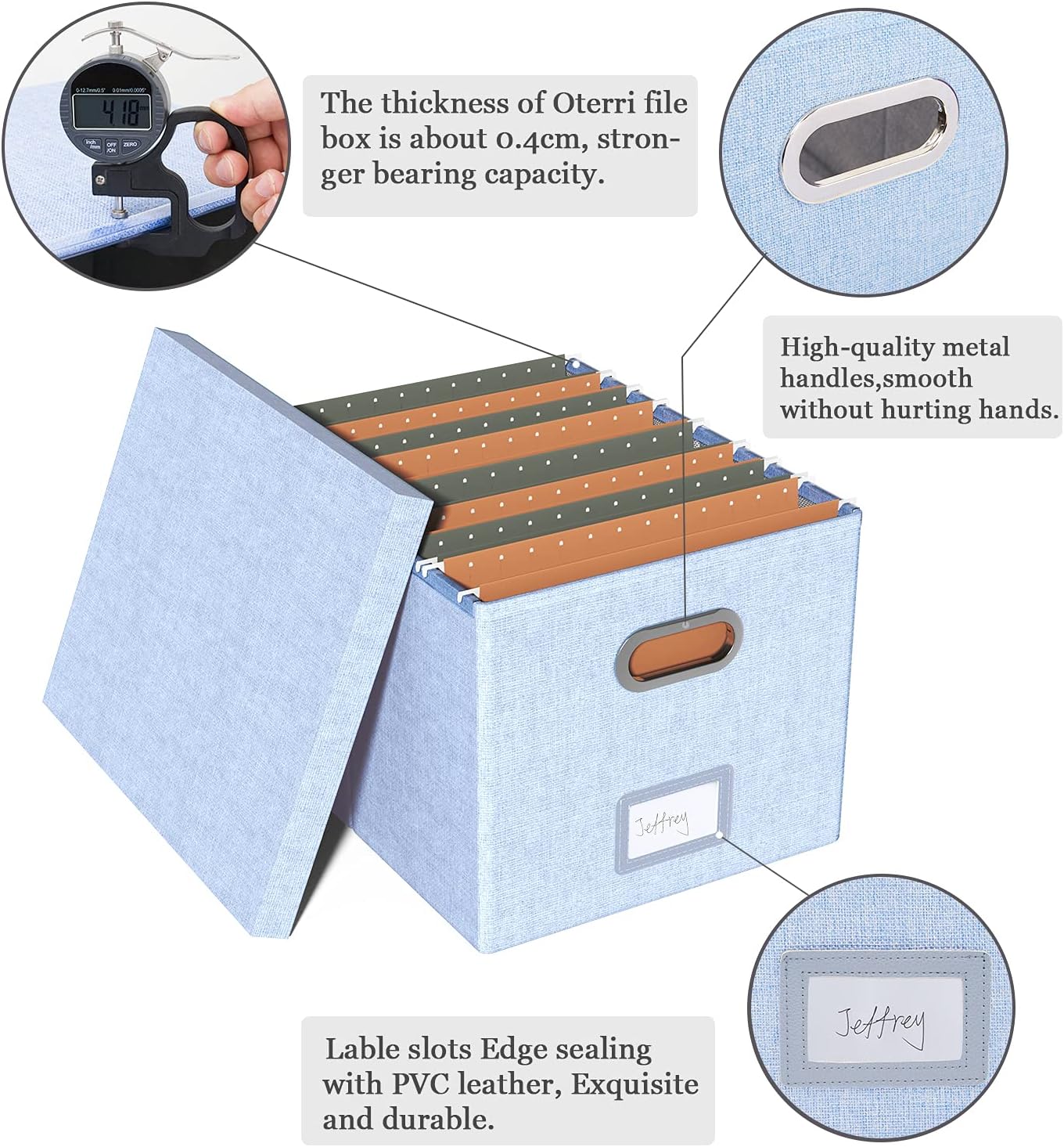 - Upgraded File Storage Box: Material and fabric upgrade and reinforcement, More durable, This file storage organizer is made of high quality MDF board, better support and bearing capacity. The lid can fit easily on the box after hanging folders.