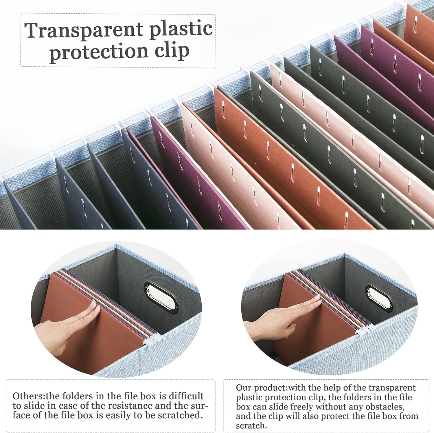 - Clear Sliding Bars: Every file storage box has two Clear sliding bars, Easy to slide file folders with no friction, and protecting the edge of the box, Make your file box beautiful and durable.