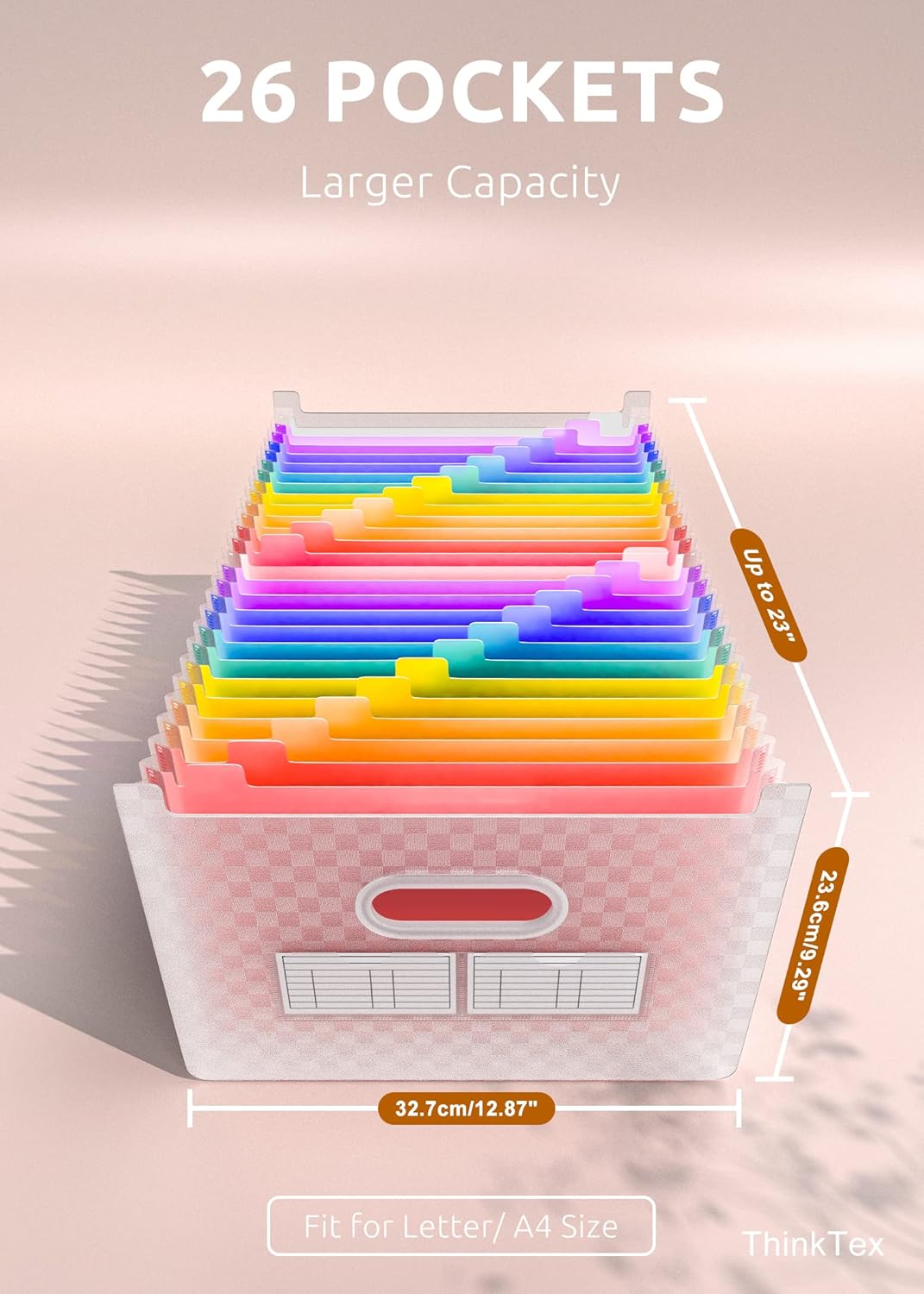- UPRIGHT & EXPANDABLE - ThinkTex Accordion File Organizer, 26 pockets, A-Z multi-colored tabs, Open top, for letter/A4 size