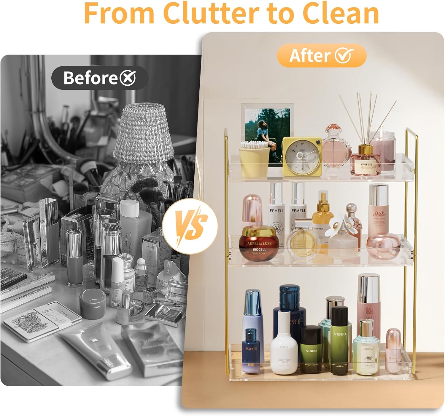 - METAL FRAME&ACRYLIC TRAY - The metal frame has strong load-bearing and stability, and the 3 tier bathroom counter organizer is waterproof and doesn't rot, rust, or fade when exposed to water. It's easy to clean and keep sleek&gloss after long-term use.