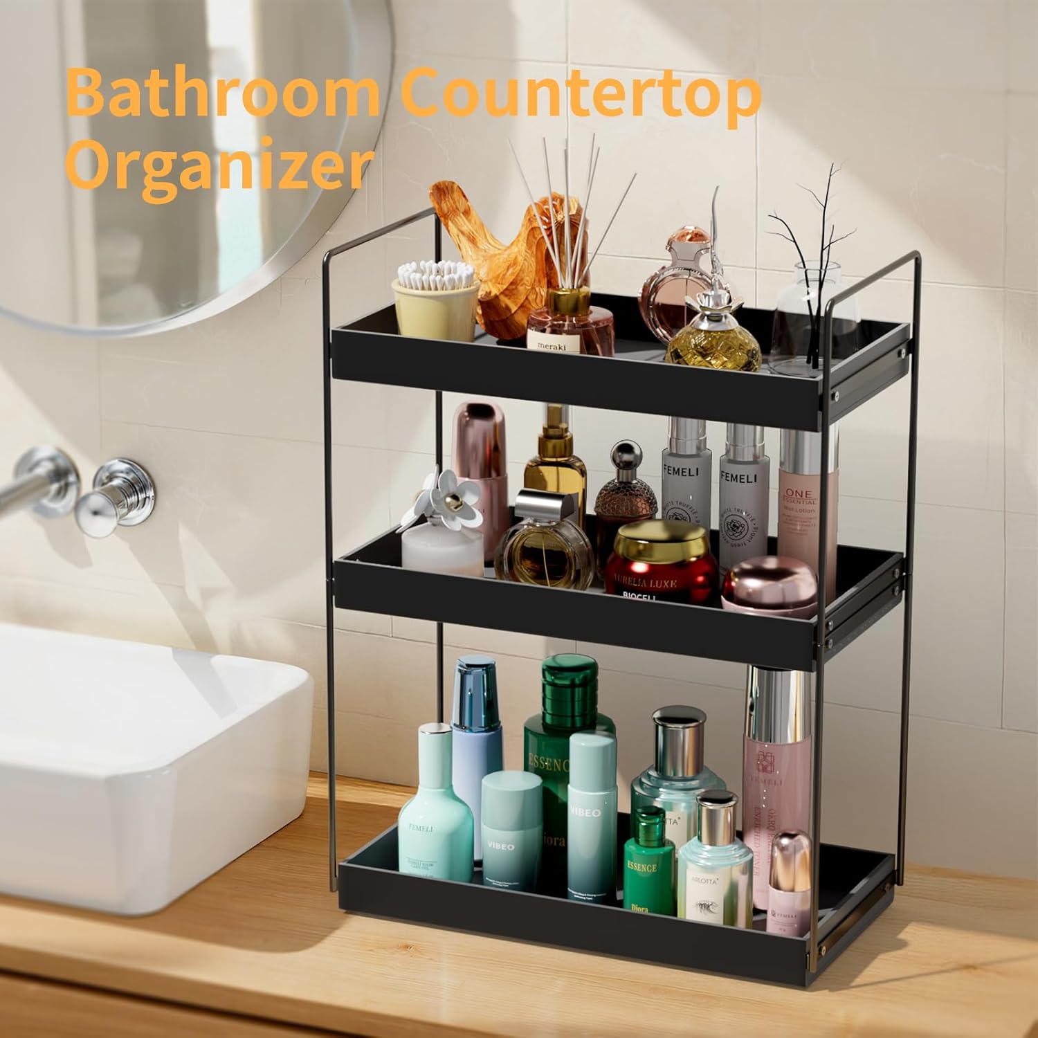 - MULTIFUNCTIONAL MATTE BLACK COUNTER ORGANIZER -This counter storage rack is not only used in bathrooms but also can widely be used in vanity, sinks/under the sink, kitchens, etc, maximize the use of space and perfectly matches your decoration, both beautiful and practical.