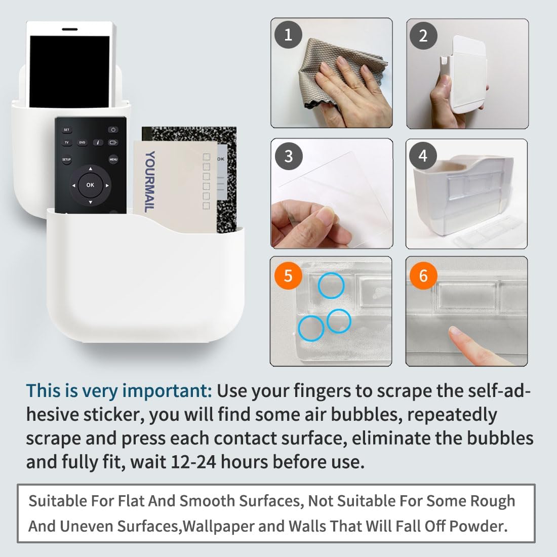 - Size: Mobile Phone Remote Control Organizers, Large (5.5 "X3.75 "X2.2 "), Small (3.15 "X4.53 "X1.38 "), Modern And Fashionable Ivory White Can Be Used In Harmony With Various Styles.Read the Instructions in Figure 6 Before Installation