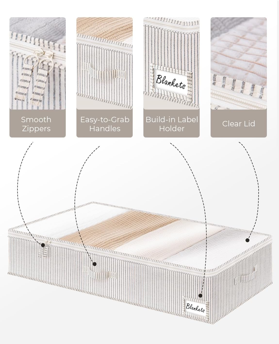 StorageWorks Large Under Bed Storage Containers with Handles and Label Holder, 2 Pack Ultra-thick Fabric Underbed Bins, Closet Organizer for Clothes, Blankets, Sweater