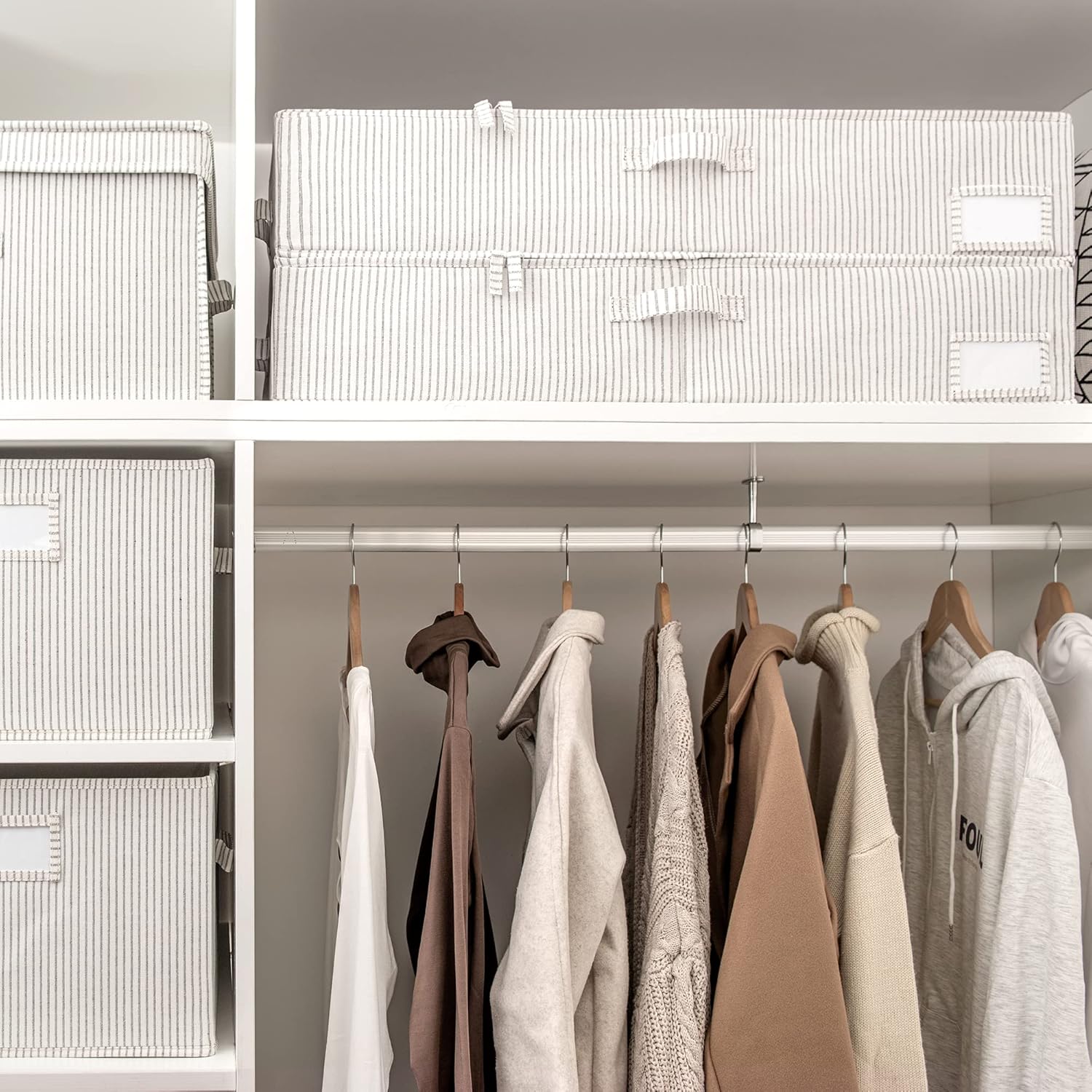 - The ultra-thick fabric storage box with its sides and bottom reinforced by cardboard is sturdy for long-term use.