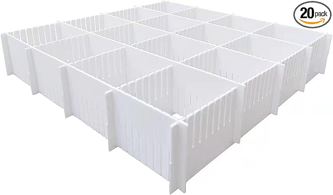 - 【Compatable with All Drawer】Pack of 20 pieces. It's possible to combine different shape to suitable for all your different small object. The grid dividers can be moved and cut according to the shape of your cabinet, drawer or box. Easy to install, easy to disassemble and clean.DIY free combination, can be cut into any length.