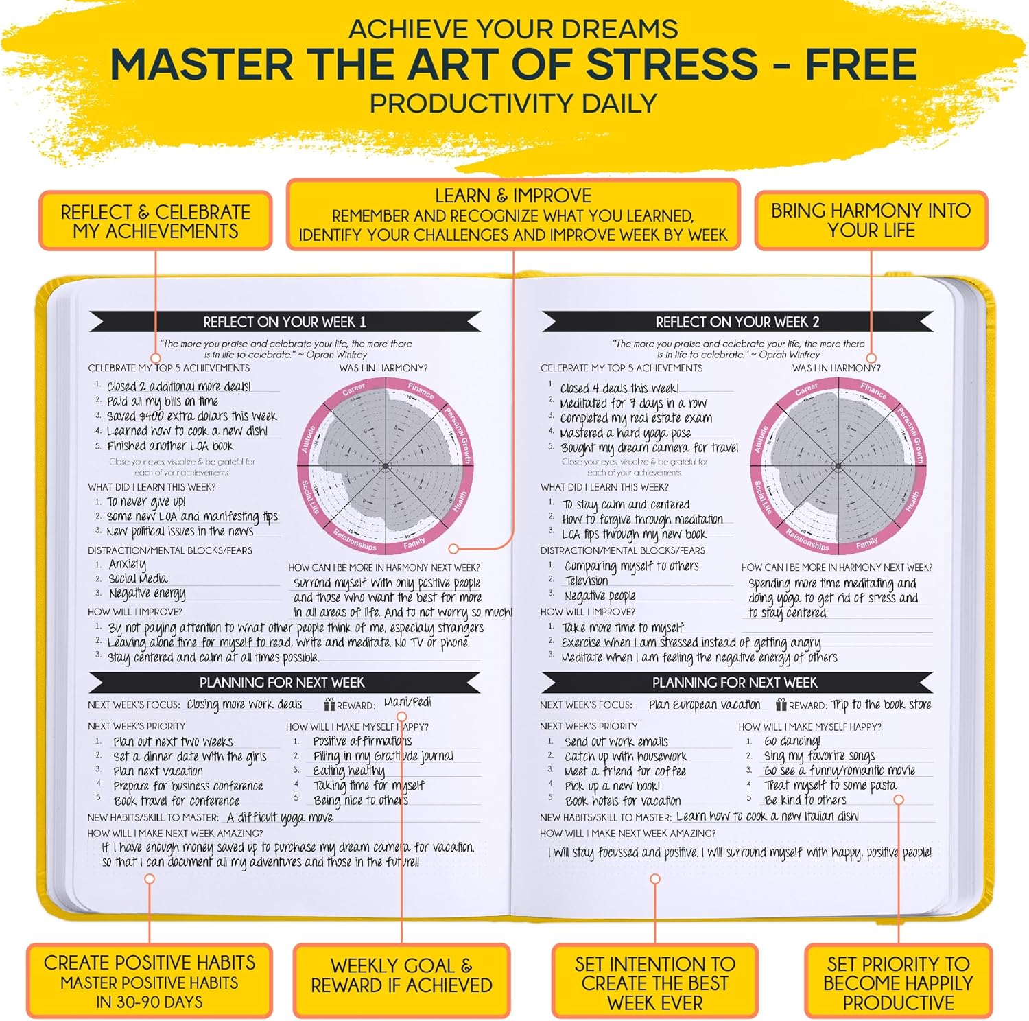 - LUXURIOUS AND TOP QUALITY - Self-care journal for women and men, perfect for entrepreneurs, professionals, college students and everyone who has burning desire to turn dreams into reality! FREE VIDEO MINI-COURSE: You will learn 10-min morning routine used by the most successful people to 10-fold your productivity, focus, happiness & passion! You will master setting goals & fix procrastination!