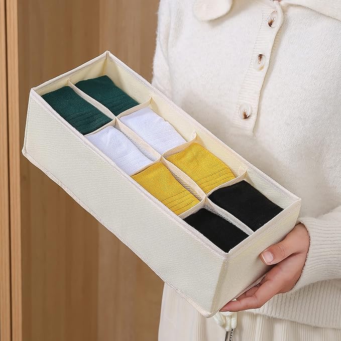- 8 GRIDS UNDERWEAR ORGANIZED: The package contains three 8-cell underwear organizers, each compartment measuring about 3.15x2.45x3.9 in, perfect for storing crew-length socks, thin socks, panties, ties, etc.