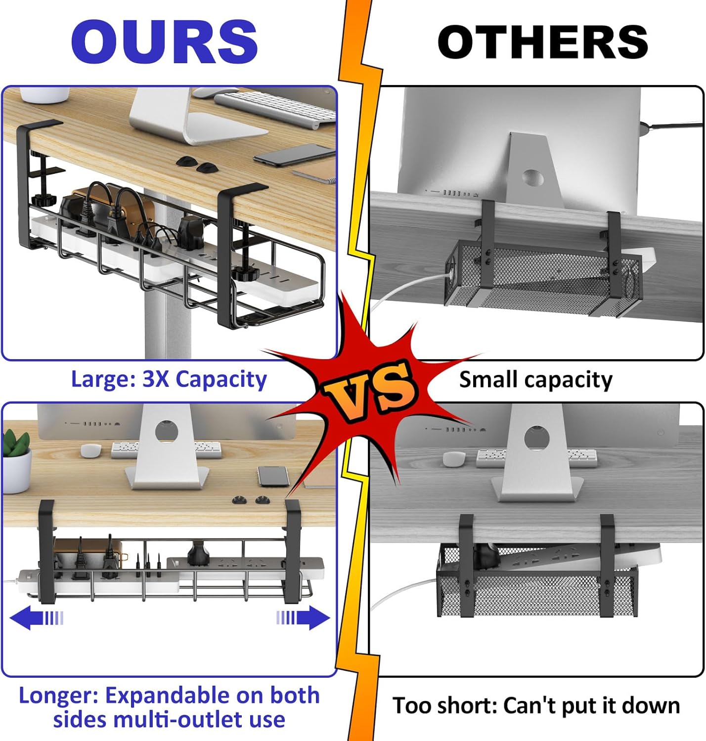 - TIDY & CLEAN DESK SPACE : REFLYING Wire management under desk makes your working space more tidy, no more messy wires and power strip, this desk cable tray is quiet different from old under desk cable organizer, more helpful, useful and more long-lasting