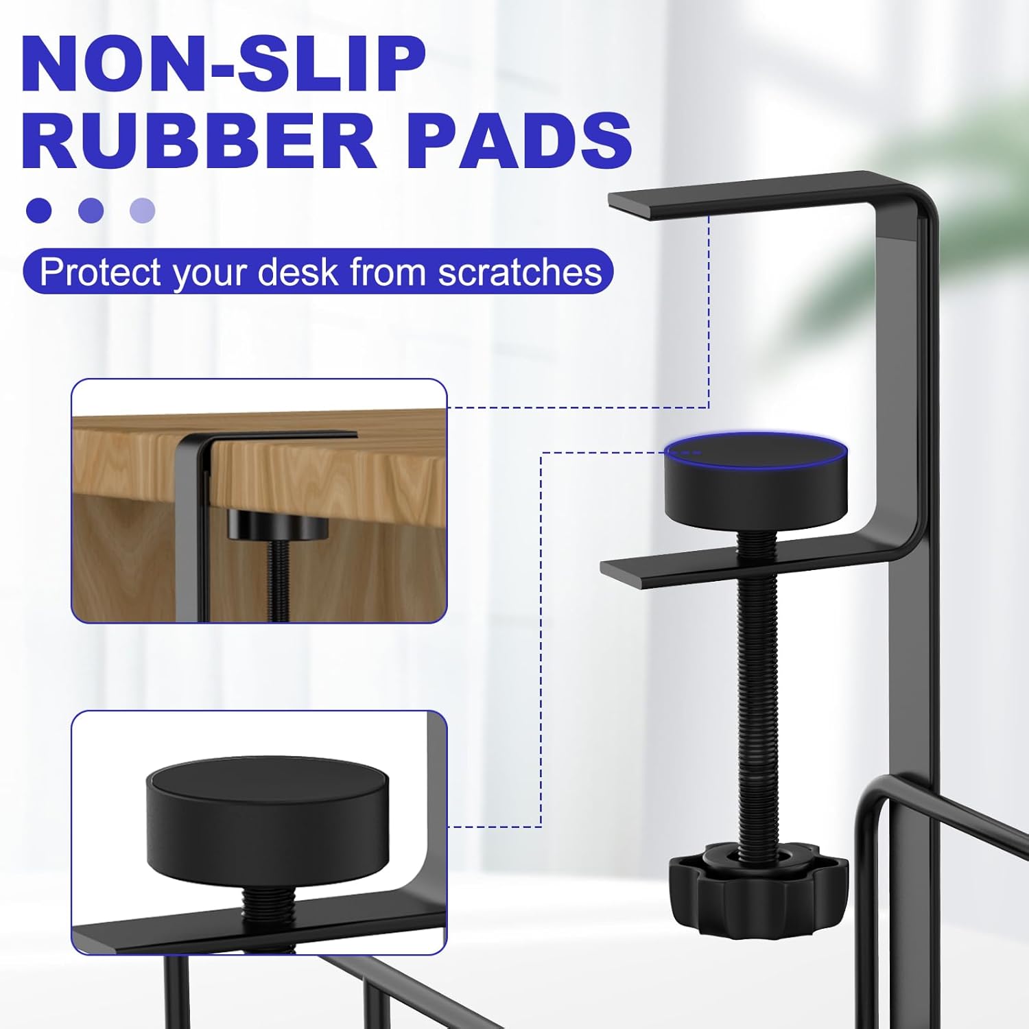 - SILICONE DESIGH & ADVANTAGES : Soft rubber pads on adjustable and removable clamps protect your desk or table from scratches. No Dust Accumulation, Anti-overheating, Flexible cable adjustment, Extra large capacity