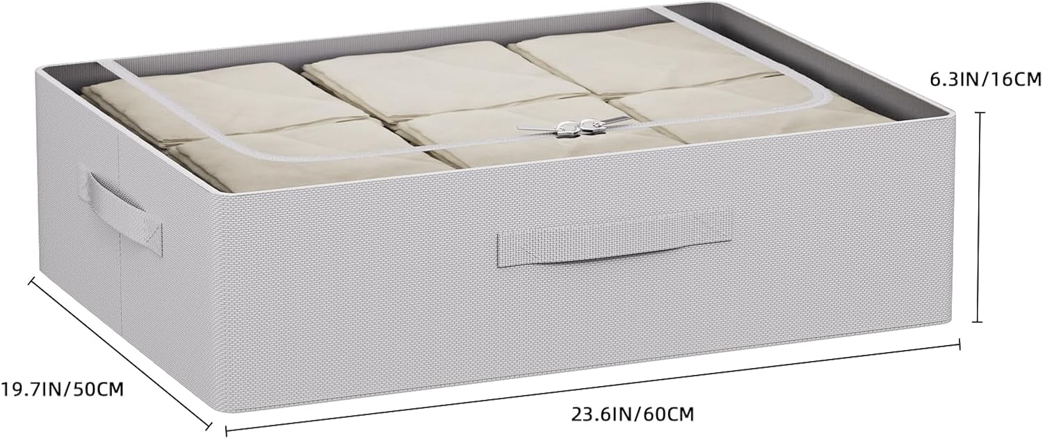 - UNDERBED STORAGE:Make full use of the space under the bed or Couch or on the Top of your Closet to make your room look more tidy and spacious.You get two of these large-sized under bed storage bins, perfect for use as under bed shoe storage, storing blankets, seasonal clothes ,books