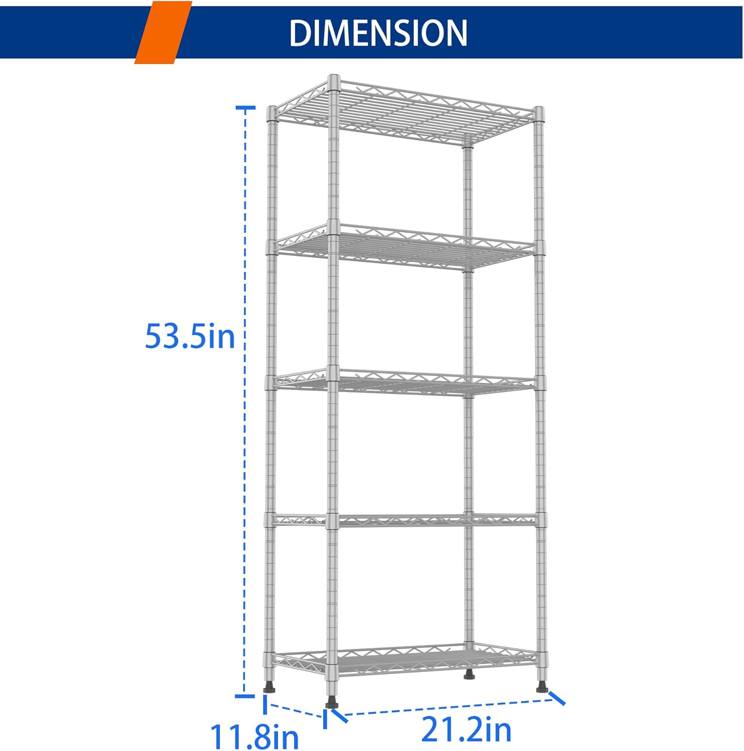 REGILLER 5-Wire Shelving Metal Storage Rack Adjustable Shelves,Standing Storage Shelf Units for Laundry Bathroom Kitchen Pantry Closet(Silver,11.8" D x 21.2" W x 53.5" H)