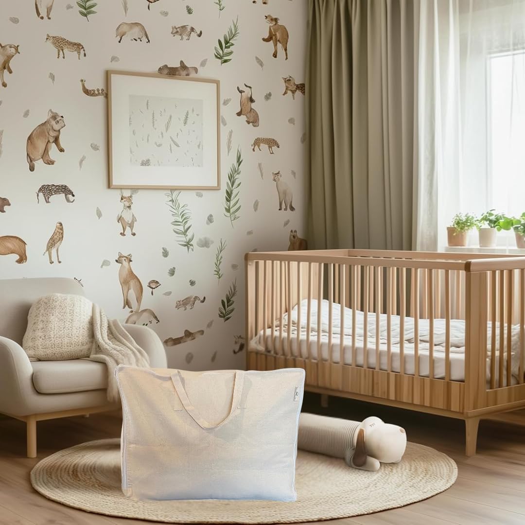 - DURABLE STORAGE: Made from pure cotton canvas fabric, this bag provides durable and breathable storage for bedding and linens.