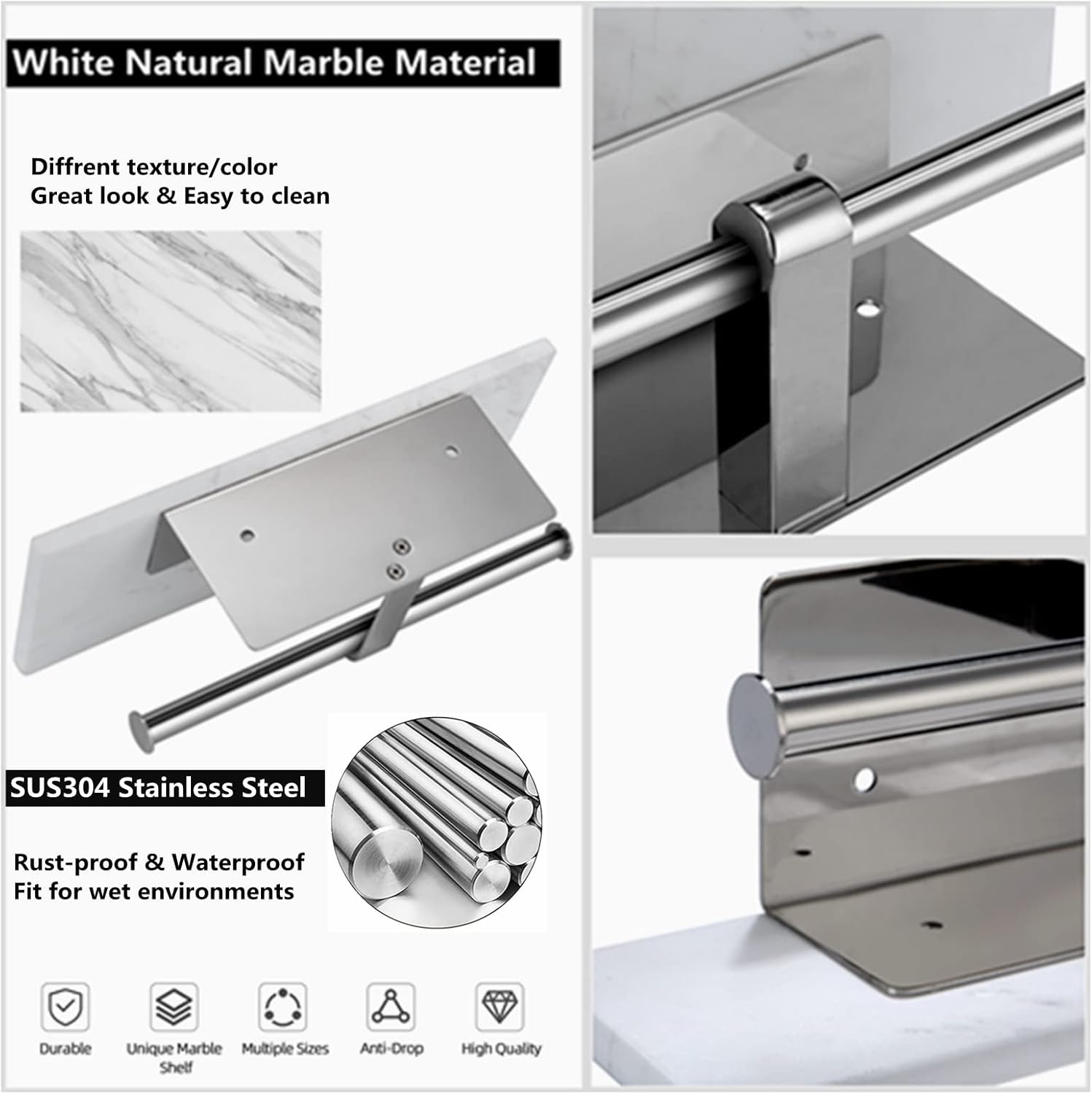 - 【Unique Natural Marble Shelf】 Each shelf is made of 100% natural marble, natural colors and shades will vary from one piece to another, the uniqueness of each marble shelf gives this paper holder a modern style and special charm.The steady toilet paper holder fits any bathroom style.