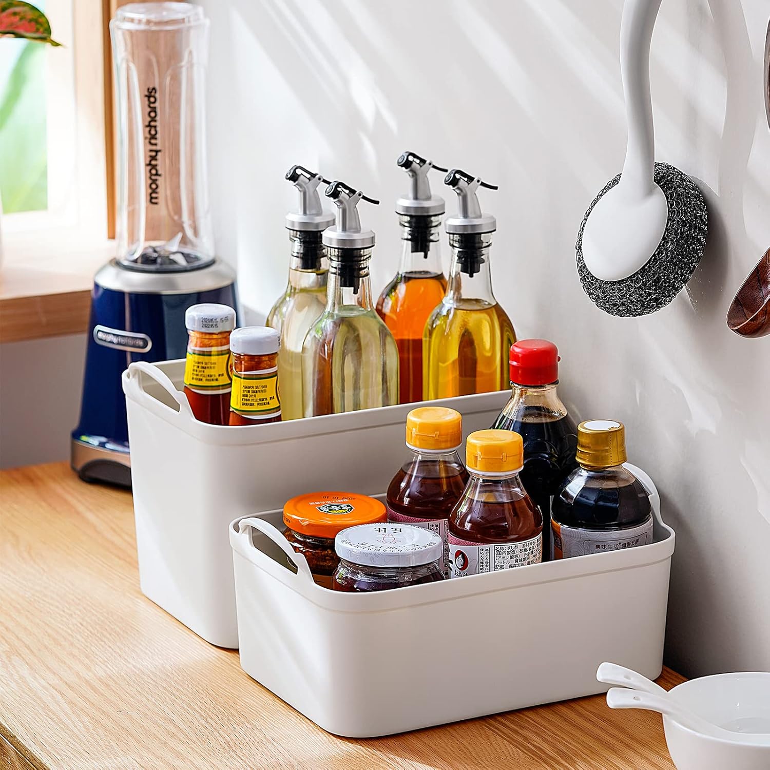 - 【Set of 5 Plastic Storage Bins】Includes 5 pack storage bins, 2 medium and 3 small. Medium Size: 10 x 7 x 6 inches. Small Size: 10 x 7 x 4 inches. These various sizes cater to your storage needs for items of all sizes