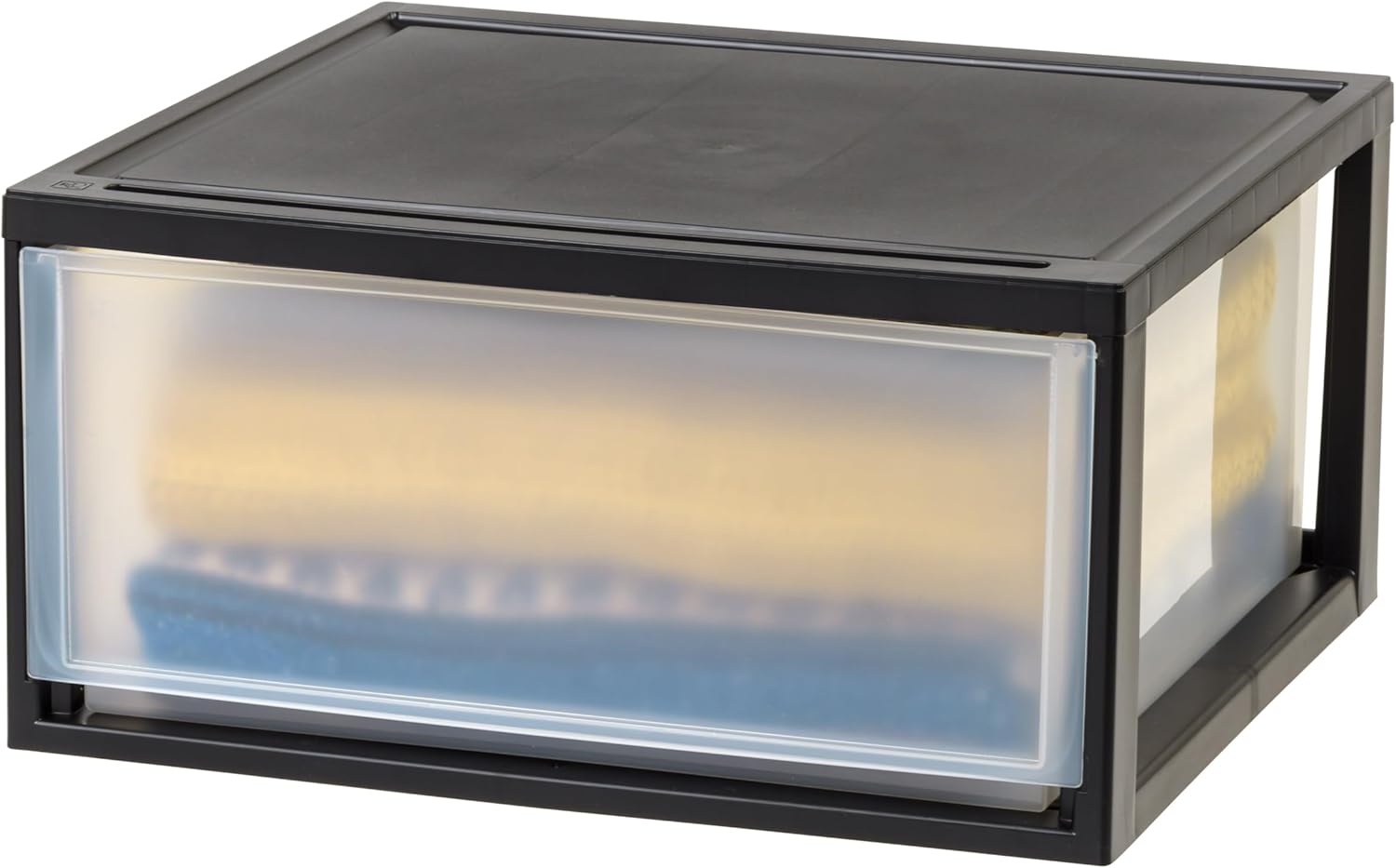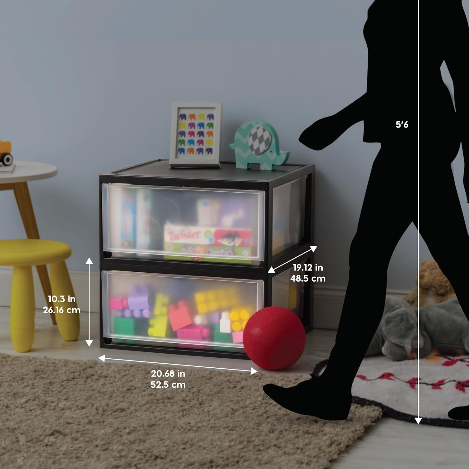 IRIS USA 47 Qt. Plastic Drawer Storage Organizer Stacking Drawers, 2-Pack, Stackable Unit with Sliding Drawer for Clothes Bedroom Kitchen Under Sink Pantry Craft Room Bathroom Dorm Office, Black