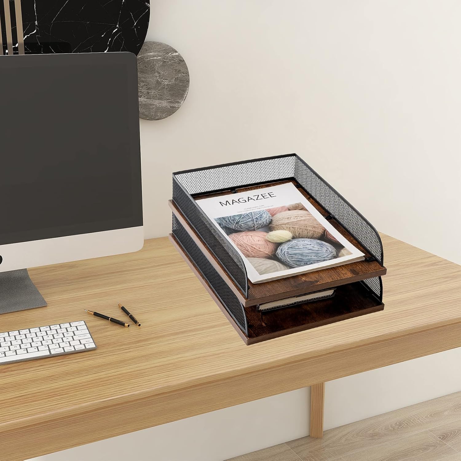 - 【2 TIER WOOD TRAY】: This set of 2 wood paper trays for the office means you have plenty of room to store all your important files while also saving desk space with a mail sorter and letter tray organizer two-tier tray.