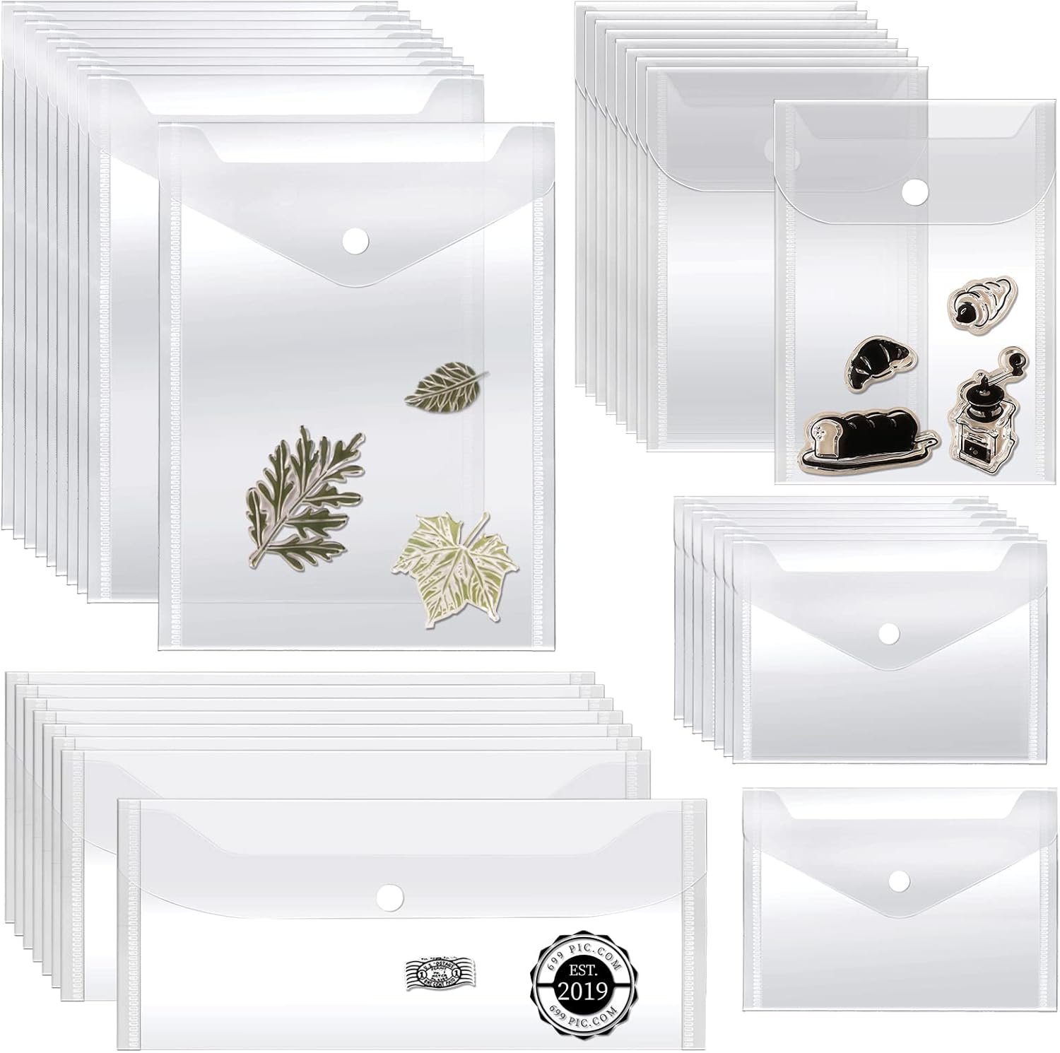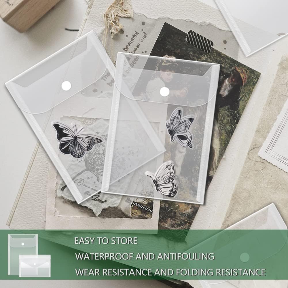 Vmiapxo 40 Pack Stamp and Die Storage Pockets, Reusable Small Plastic Envelopes Waterproof Sticker Organizer Receipt Holder Photo Storage Folders (Mixed Size)