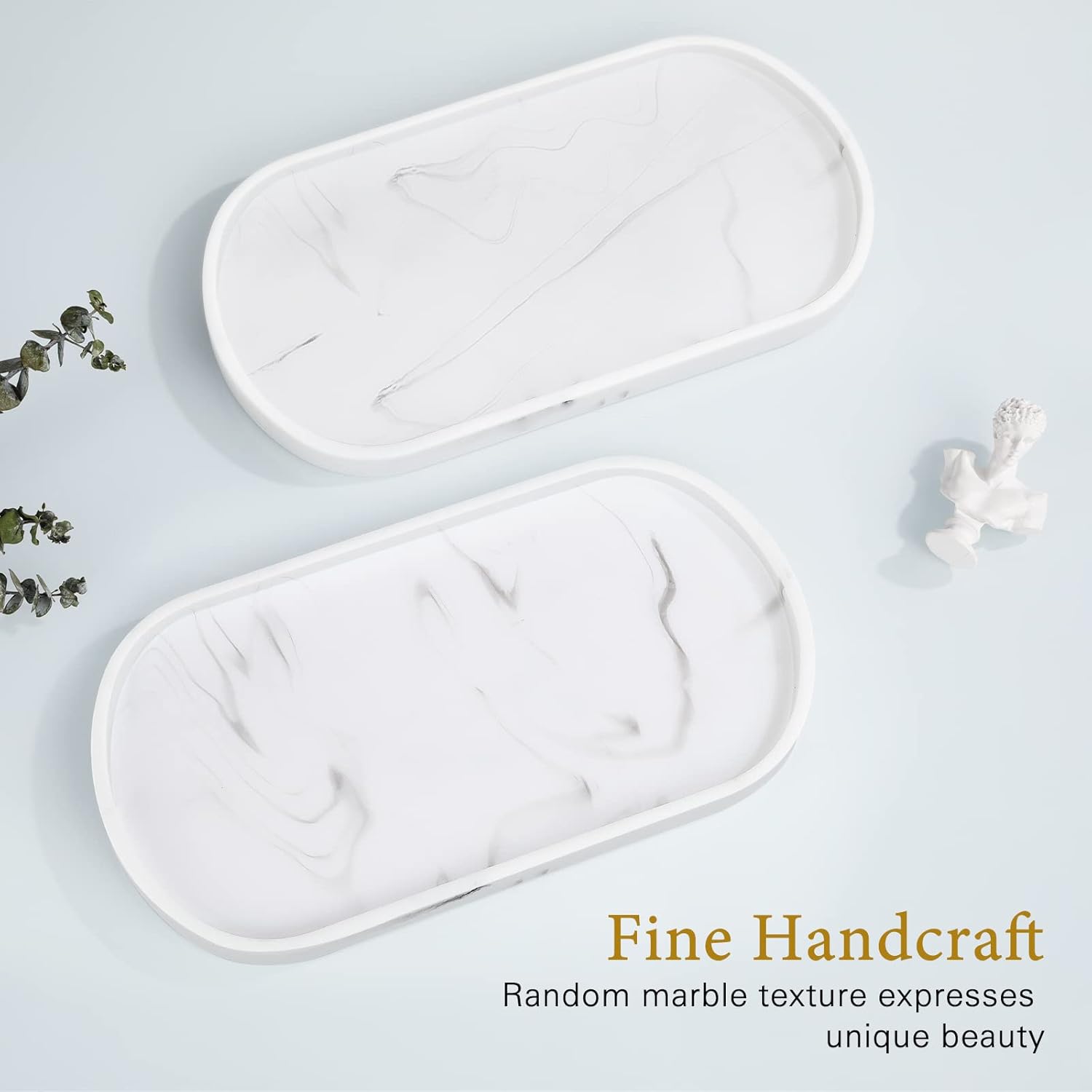Luxspire Bathroom Vanity Tray, Handmade Resin Kitchen Sink Tray, Oval Toilet Tank Tray, Bathroom Countertop Organizer Tray for Jewelry/Perfume/Soap Dispenser/Hand Towel - 11.4 Inch, White Marble