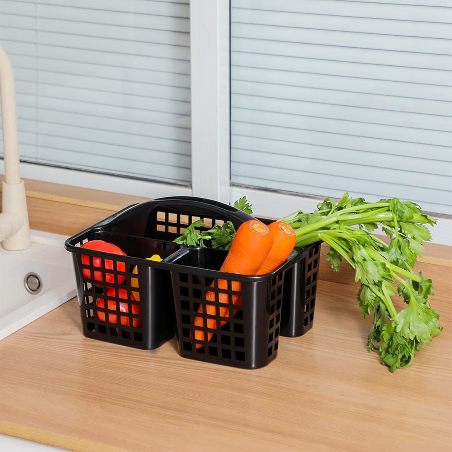 - Plastic Basket Size: 12.4 in L x 8.9 in W x 7.4 in H, 3 compartments designed to organize and hold what you need, easy to use and reach; light weight, easy to clean.