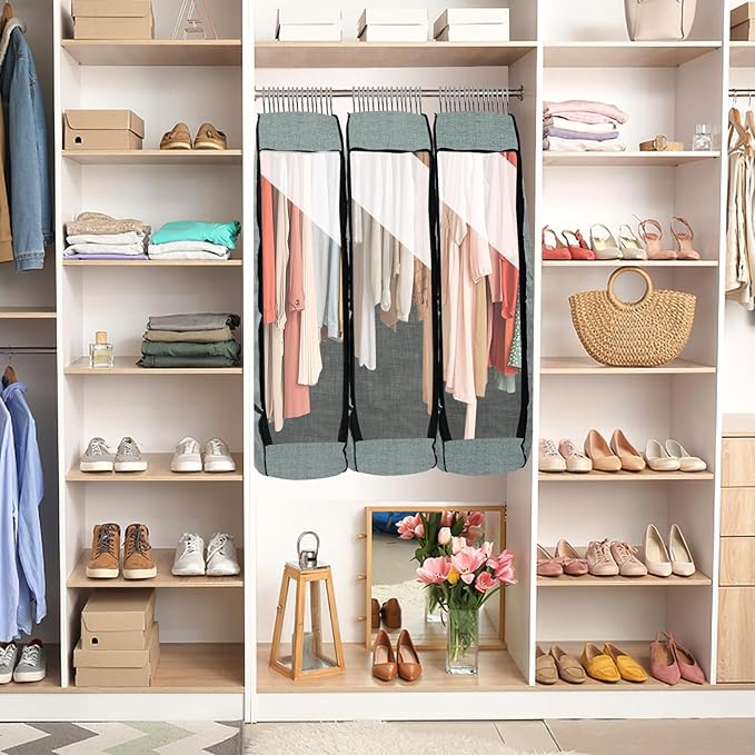 - Unique Double-zipper Design - This hanging clothes bag adopts a double zipper design, you can easily pull down the transparent part, which is convenient for you to hang and take out the clothes. At the same time, we also added two 12"x12" storage bags behind the dust cover, allowing you to store multiple items in the small bag.