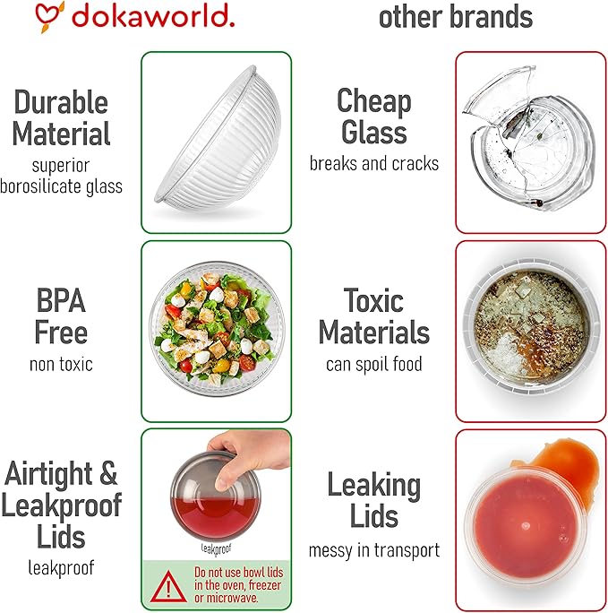 - SAFE: Upgrade your pantry with a recyclable, 100% BPA-free glass bowl set with lids. Order our glass storage bowls with confidence!