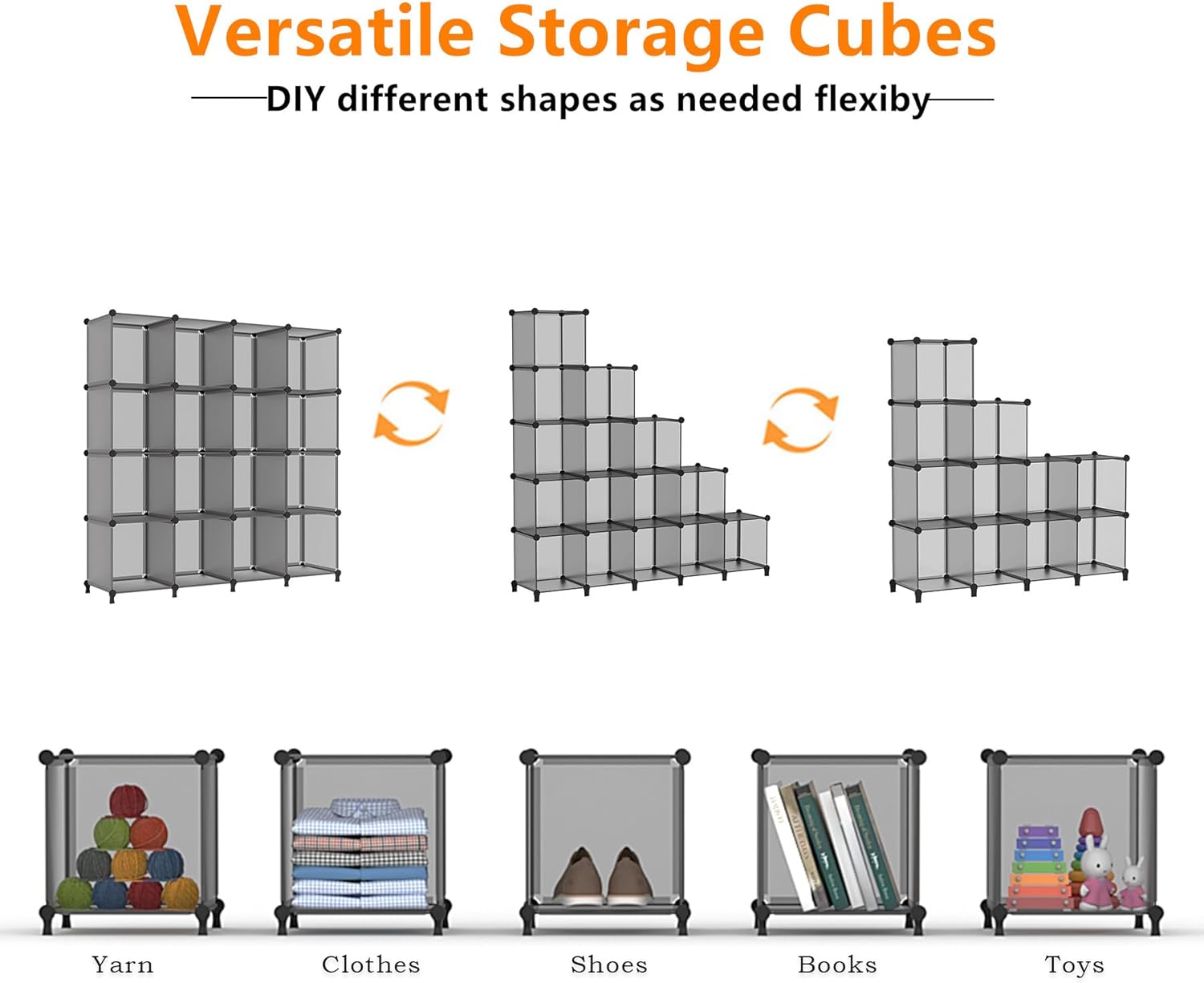 AWTATOS Cube Storage Organizer, 16 Cube Closet Organizer, Stackable Storage Cube Shelves, DIY Portable Closet Clothes Organizer Shelving for Bedroom, Closet, Wardrobe, Bathroom, Grey