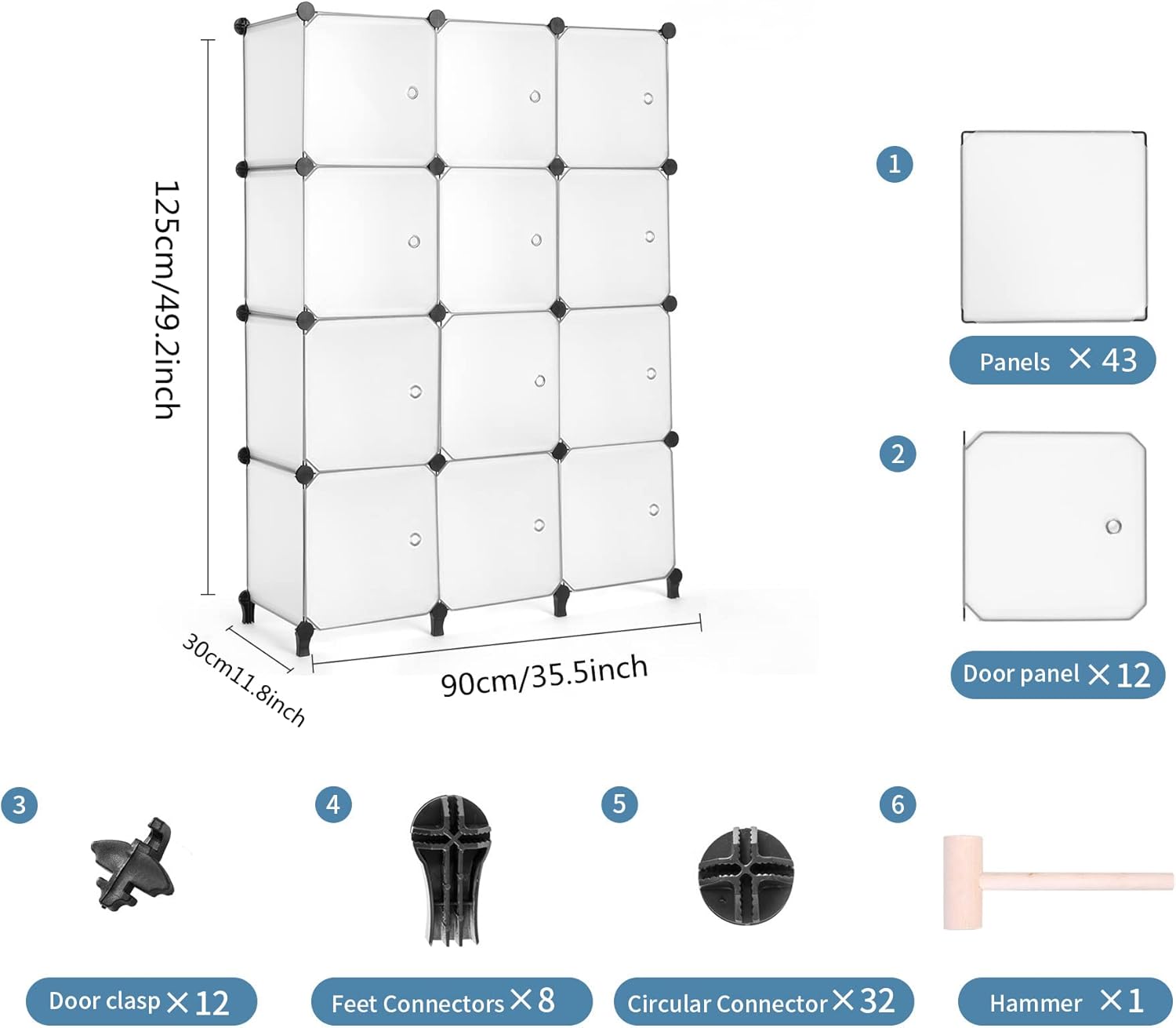 AWTATOS 12 Cube Storage Organizer with Doors, DIY Plastic Closet Shelf, Modular Bookshelf, Stackable Shelving Rack for Bedroom, Living Room, Translucent ULPZ011