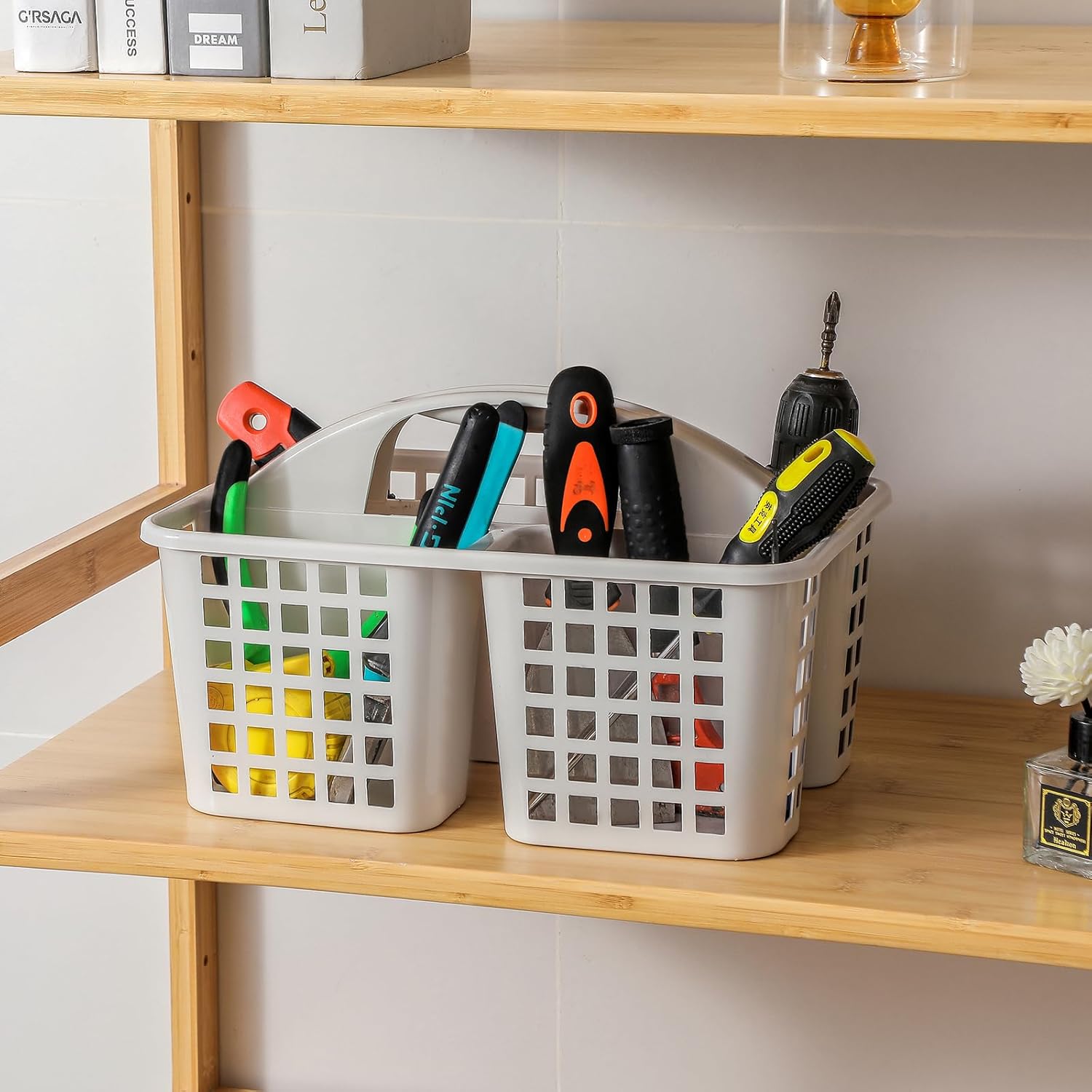 Portable Shower Caddy Basket with Compartments Cleaning Supplies Organizer with Handle Plastic Storage Divided Tool Bin for Bathroom, Bedroom, Kitchen, College Dorm, Garden, Under Sink, Light Grey